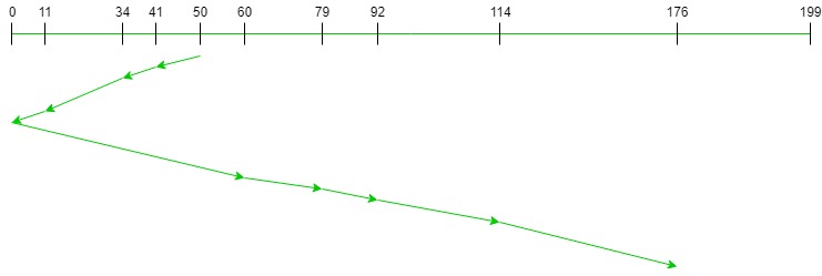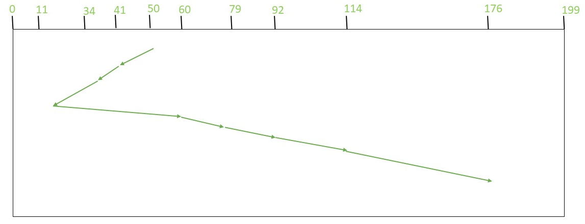 지속적으로 디스크를 앞뒤로 검사하는 방법 > 진행방향에 있는 요청을 처리한 후 다시 반대 방향으로 진행하며 요청 처리