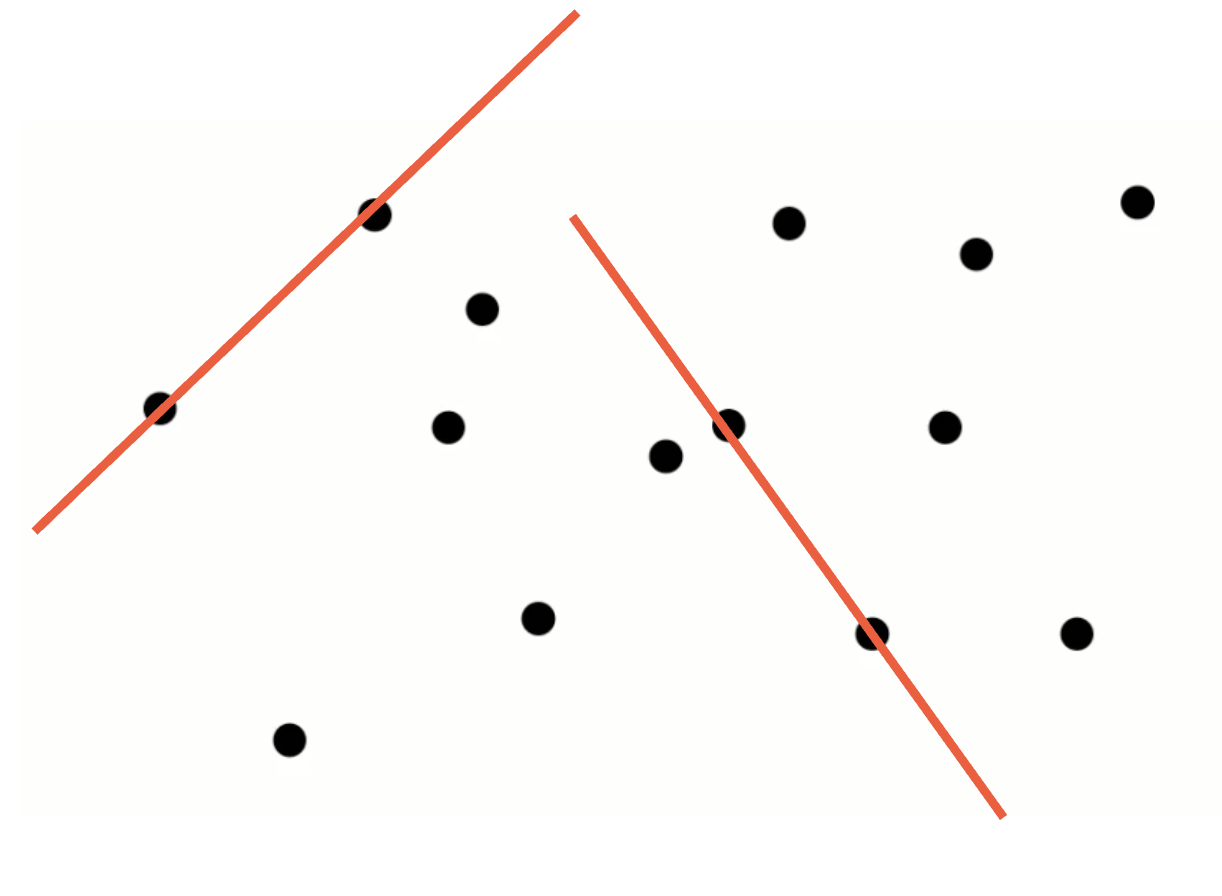 왼쪽 아무 점에서 오른쪽 아무 점이나 찾아서 선을 긋는다.