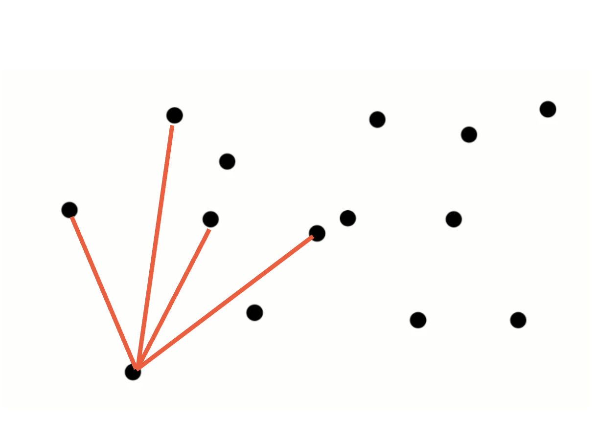 점 하나를 봤을 때, 모든 점들은 상수 시간을 쓴다.