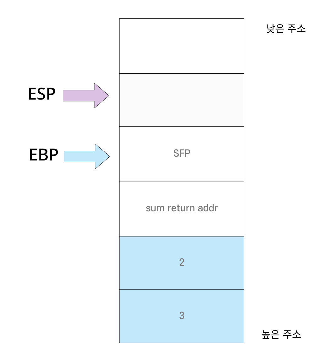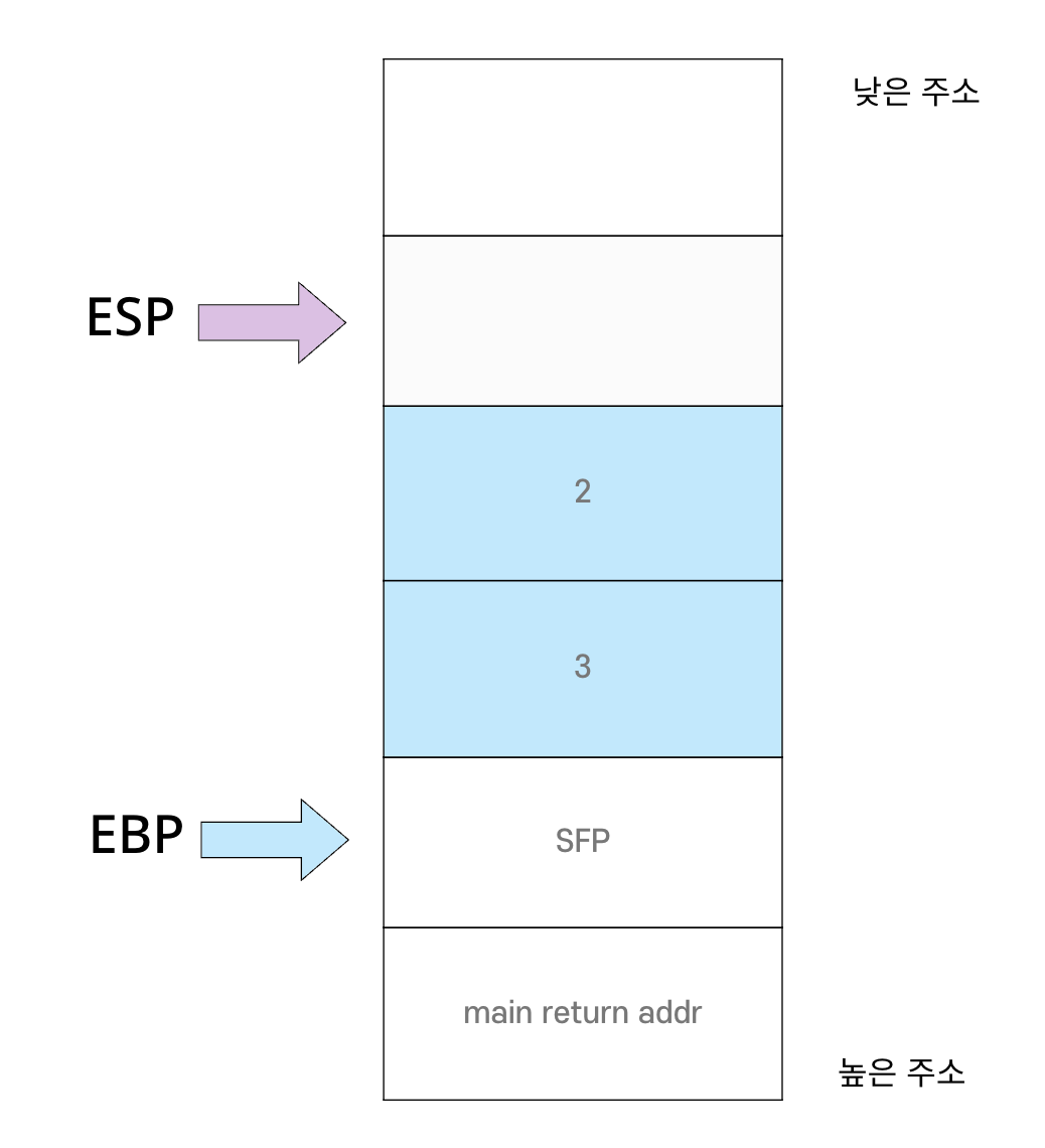 - 스택은 Callee에 의해 정리됨