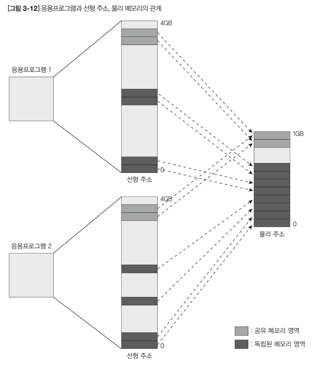 - 물리 메모리 크기보다 더 큰 영역의 선형 주소도 물리 페이지만 연결하면 사용 가능