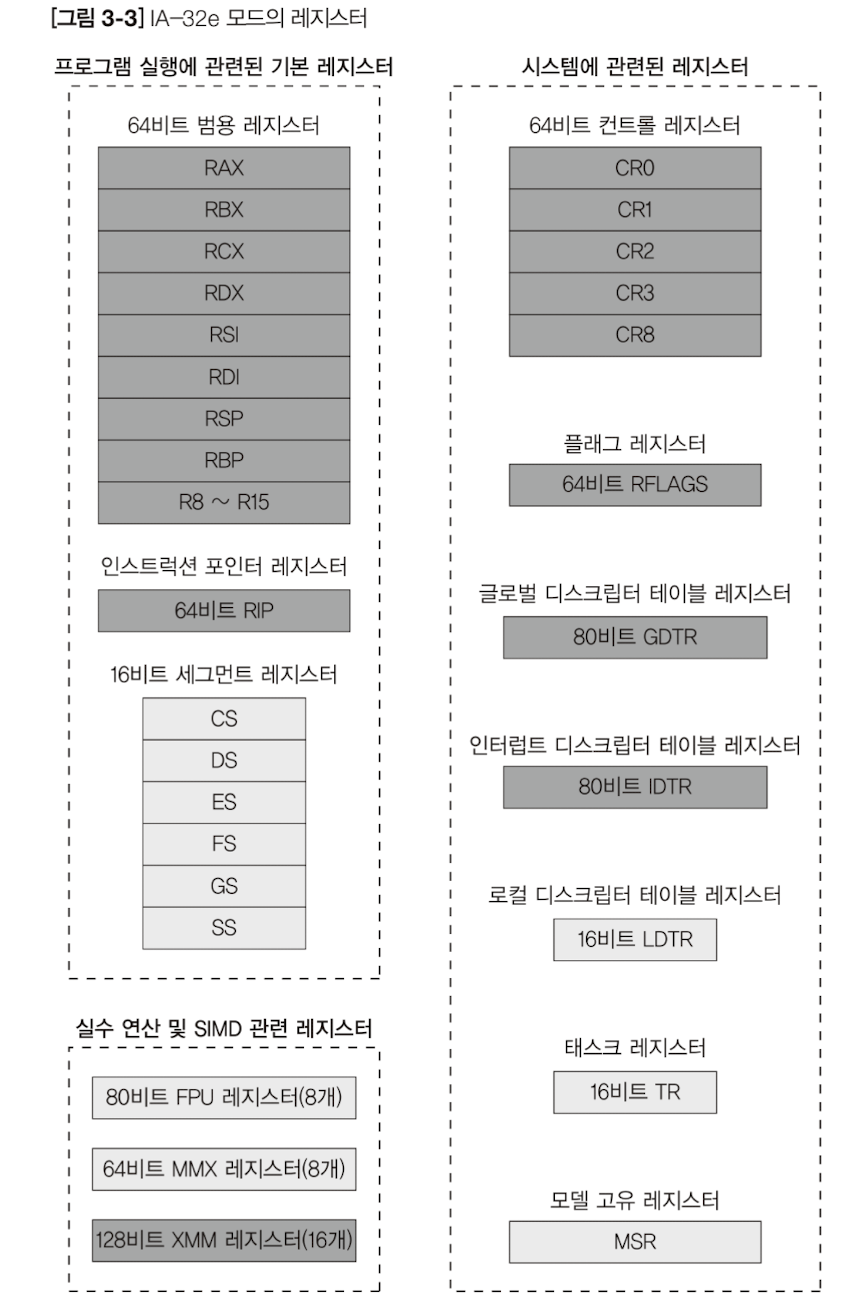 - IA-32e모드 : 64비트 크기 (일부 제약 사항 존재)