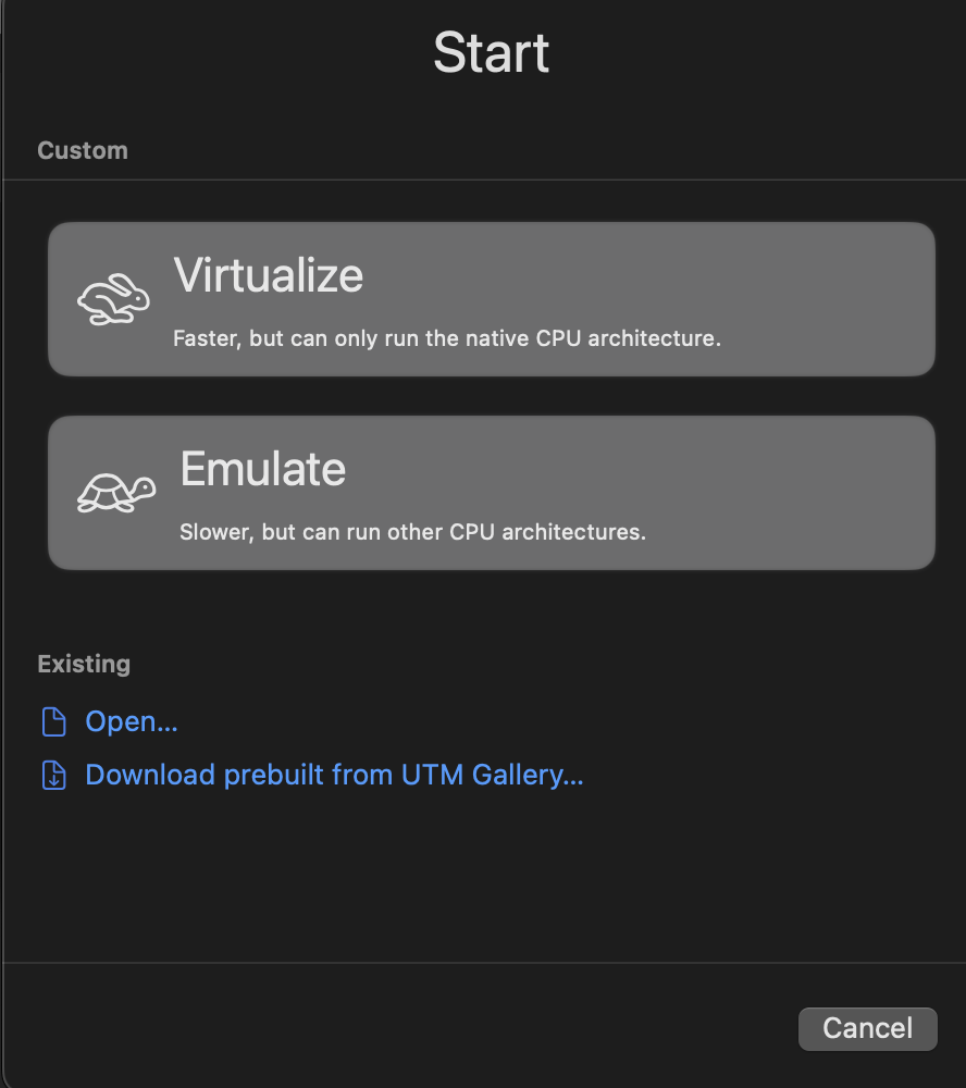 즉, Virtualize로 만들어진 가상환경은 여전히 arm64기반이므로 exec파일을 실행할 수 없다.