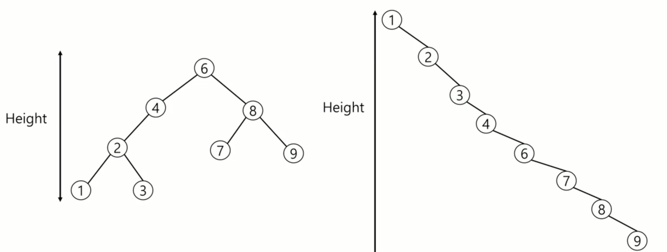 N개의 노드가 있다면, Height는 O(log N)