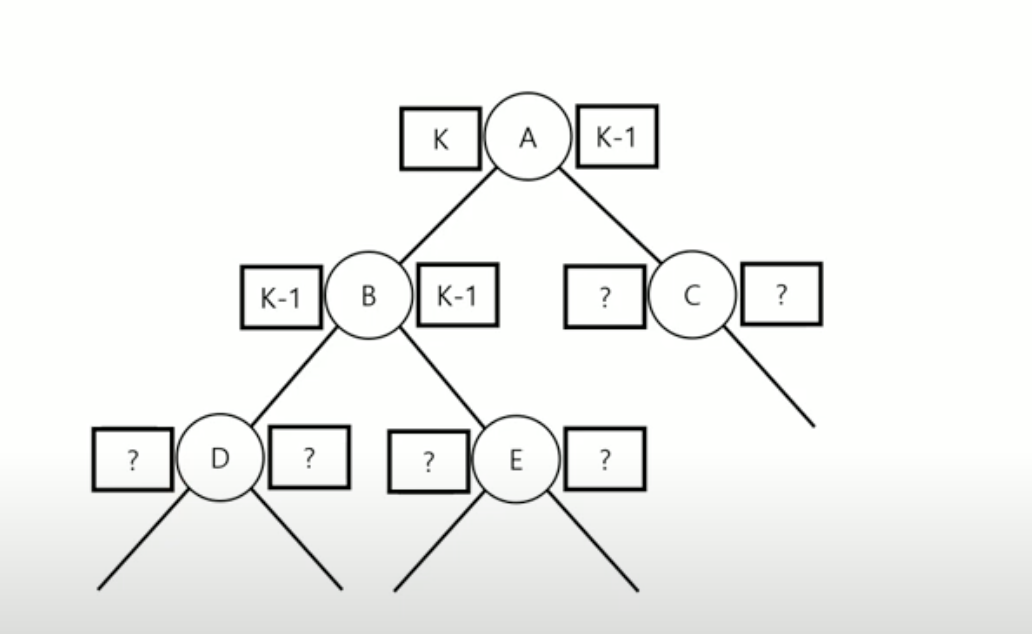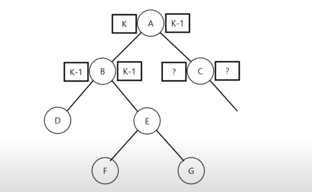 - A의 라벨은 K-1, K-1 (왼쪽 자식노드였던 B가 올라가면서 왼쪽 노드가 하나 줄어듦)