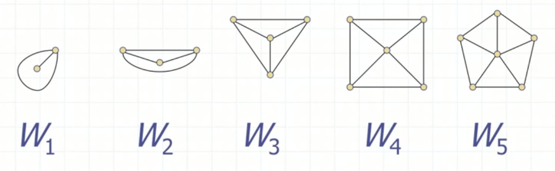 \(W_1\)은 pseudo 그래프, \(W_2\)는 multi graph이므로 wheel이라고 생각하지 않는다
