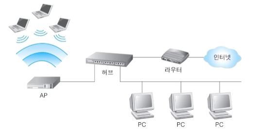 - Access Point와 무선 장비들이 무선으로 연결되어 있음