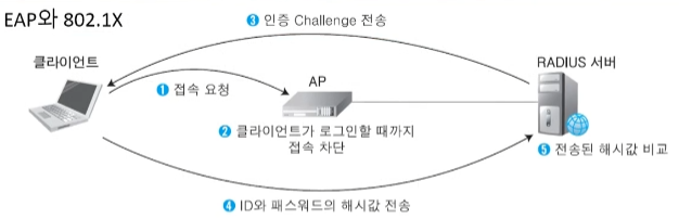 - 서버→AP : 사용자 pw와 암호화하여 전송
